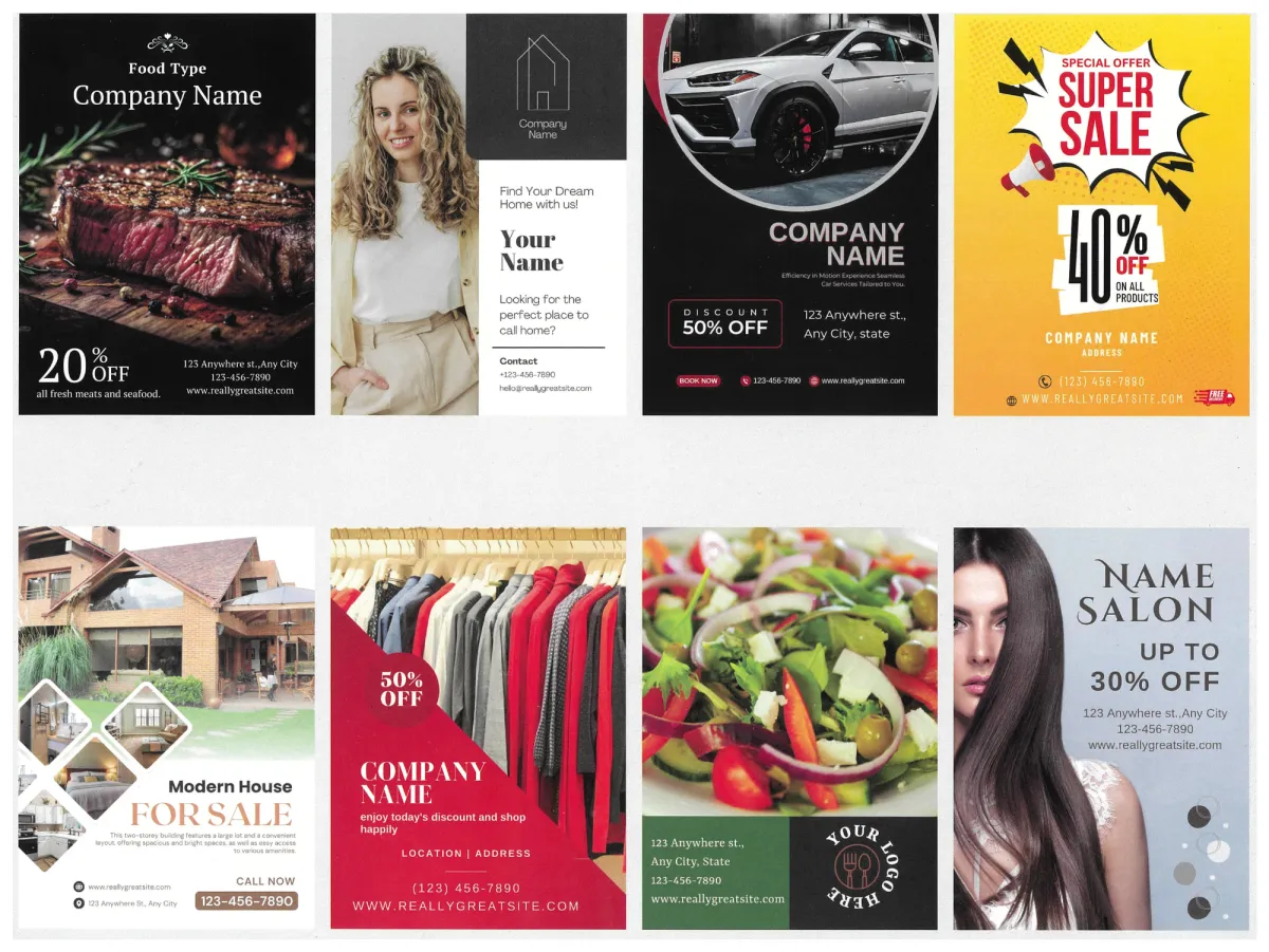 All pricing includes professional design, high‐gloss printing, and USPS postage — no additional